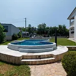 Een complete keuken, samen met een eethoek, zijn beschikbaar om te dineren. Er zijn ook een koelkast, een oven en keukengerei om uw eigen maaltijd te bereiden. Gasten kunnen de luchthaven Pula gemakkelijk bereiken, op 41 minuten rijden van deze villa. Deze accommodatie heeft een terras om op te ontspannen na een drukke dag, samen met een buitenzwembad.
